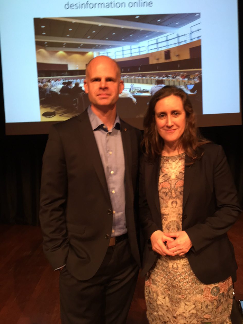 Ett fenomen som Hanna Stjärne nämnde är ”Deep fake”, manipulerade videofilmer som lägger nya ord i den filmade personens mun. Googla på det uppmanade hos oss. Än så länge är tekniken inte perfekt, men vart kan den leda om några år? Stjärne visade sedan ett exempel på en falsk nyhet som SVT råkat ut för. Någon hade köpt annonsplats på Facebook i SVT:s namn, för att sprida nyheten att ett virus skördat 40 dödsoffer.